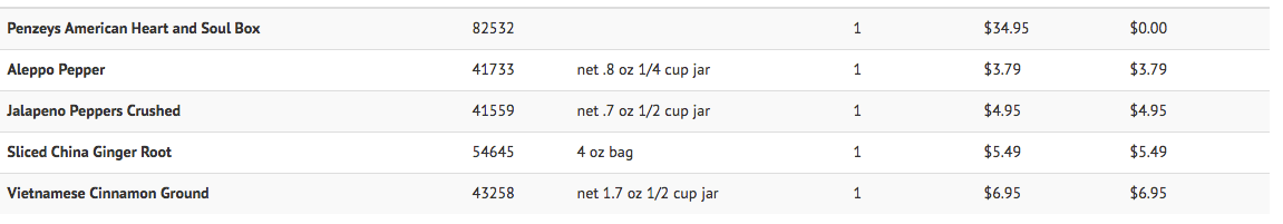 Here is the order I just placed with some of my favorite spices from Penzys. I also love the smoked paprika but didn’t need that right now.