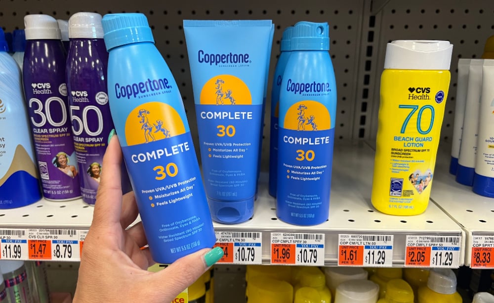 Summer is here, time to stock up on sunscreen! Check out this HOT deal at CVS this week. Now through 7/9, you will receive $10 ExtraBucks Rewards when you spend $20 on Coppertone Sunscreen (limit 1). Included in this deal is the new Coppertone Complete 5.5 oz. sunscreen spray and 7 oz. lotion., which are priced at $10.79 in my local store!