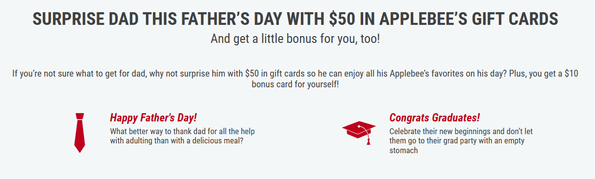 Buy $50 in Gift Cards Get a FREE $10 Bonus Card from Applebee’s!