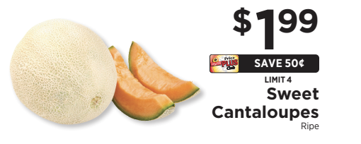 Woot! We have another easy deal. Through 12/14, ShopRite has Ripe Sweet Cantaloupe on sale for $1.99.
