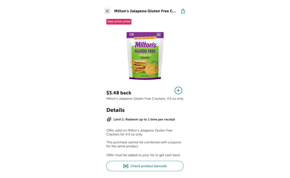 Here’s a great FREEBIE to add to your Walmart list this week! The Milton’s Jalapeno Gluten Free Crackers are priced at $3.48 at Walmart. PLUS we have Walmart Cash and Ibotta rebates for $3.48 back with a Limit of 1 each! This needs to be done in-store because of the rebate. This deal expires when the rebate does, but HURRY the Walmart Cash offer expires tomorrow!