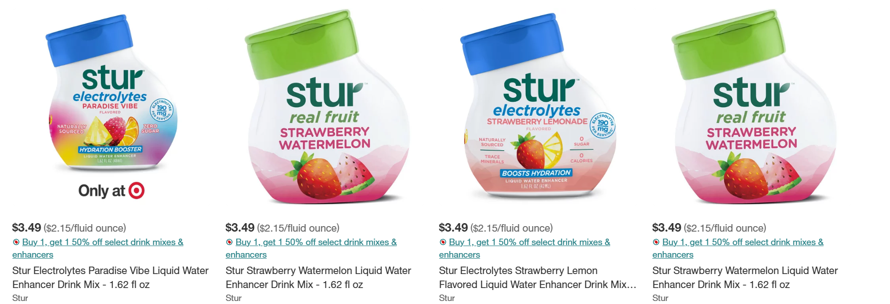 Here’s a new deal to add to your Target list this week! Stur water enhancers on sale BOGO 50% off with Target Circle (reg. $3.49). And we have an Ibotta rebate for $3.49/2, with a limit of 1. This should be done in-store!