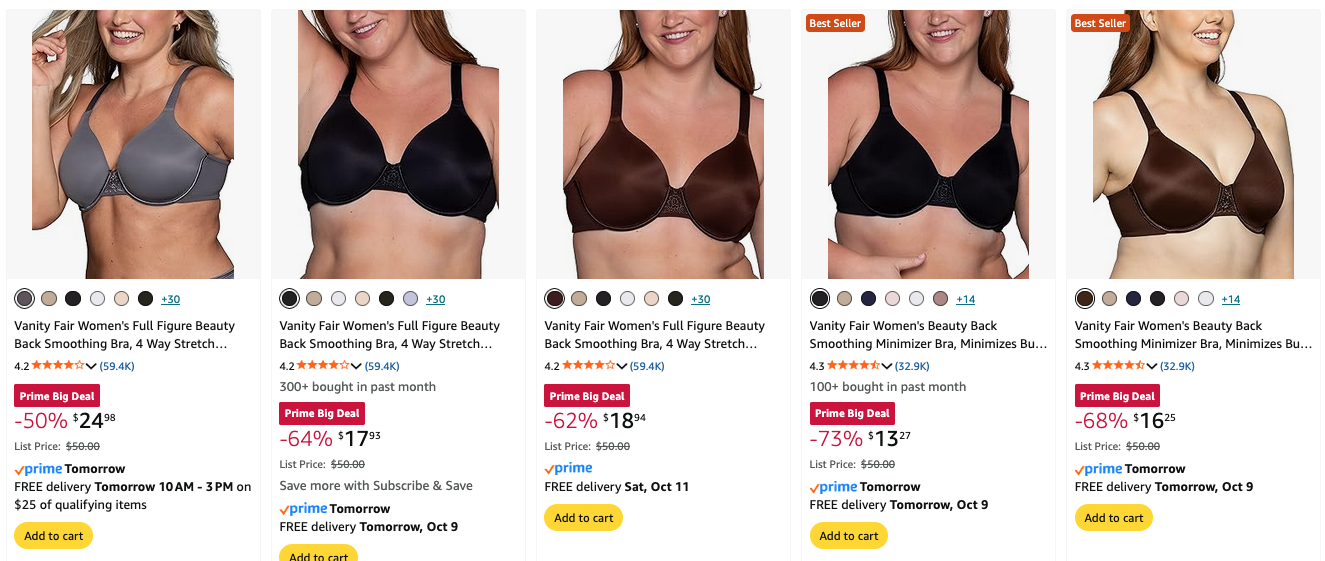 Vanity Fair Bras are up to 70% off & starting at just $13 for an Amazon Prime Day deal.