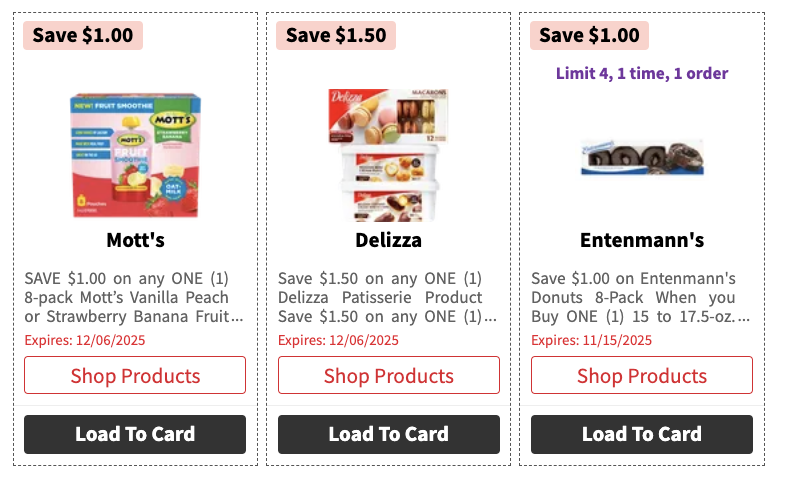 - $1/1 8-pack Mott’s Vanilla Peach or Strawberry Banana Fruit Smoothies12/6/2025