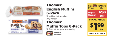 Through 6/21, ShopRite has Thomas’ English Muffins 8ct and Muffin tops 6ct on sale for $2.99.